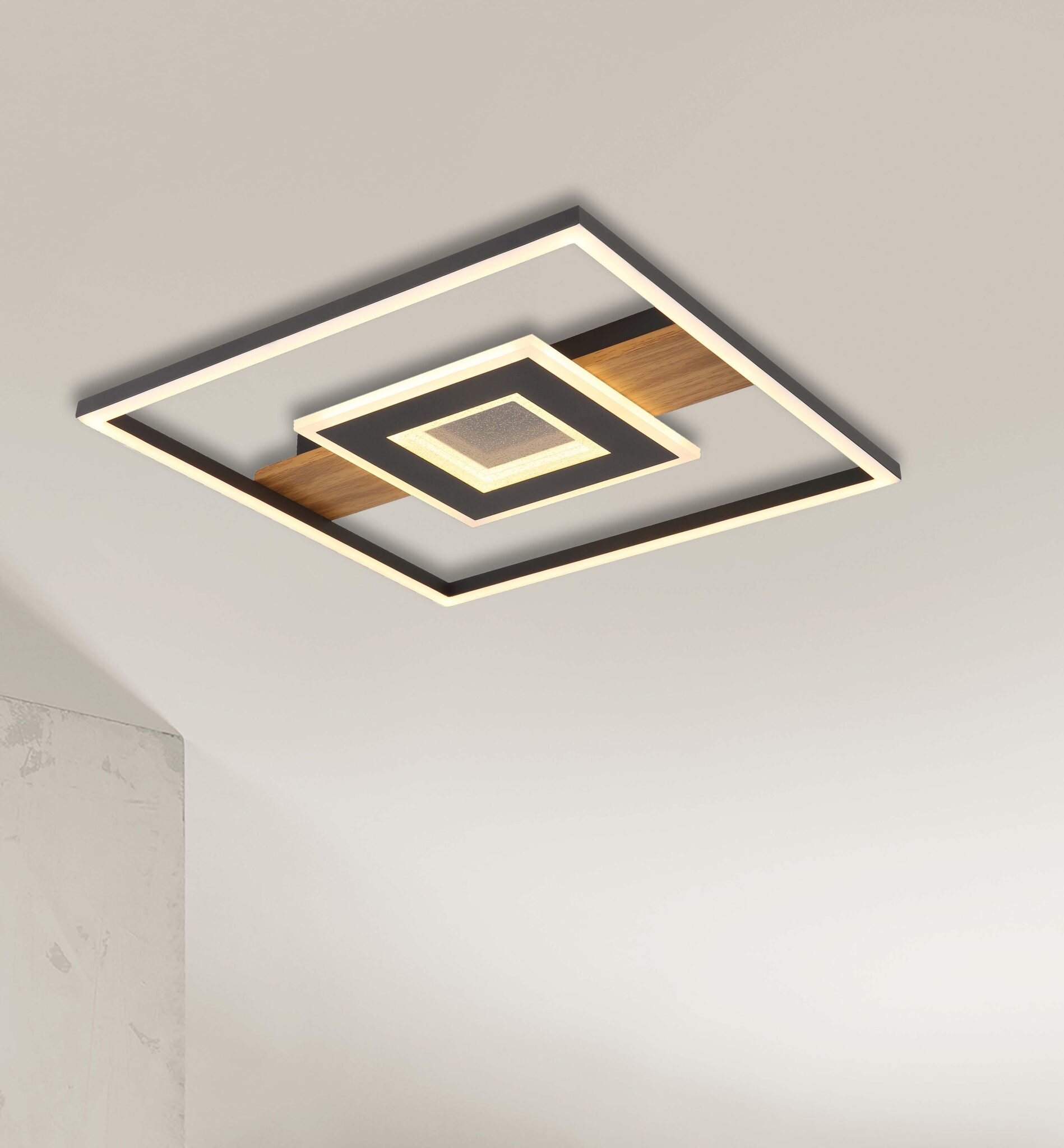 Metall graphit/MDF Holzoptik dunkel, Kunststoff opal, 1x 18W LED/gesamt 2.050 Lumen/3.000 Kelvin, L/B/H ca. 100/7/120 cm. Diese Leuchte enthält eingebaute LED-Lampen. Die LED’s können nicht ausgetauscht werden.