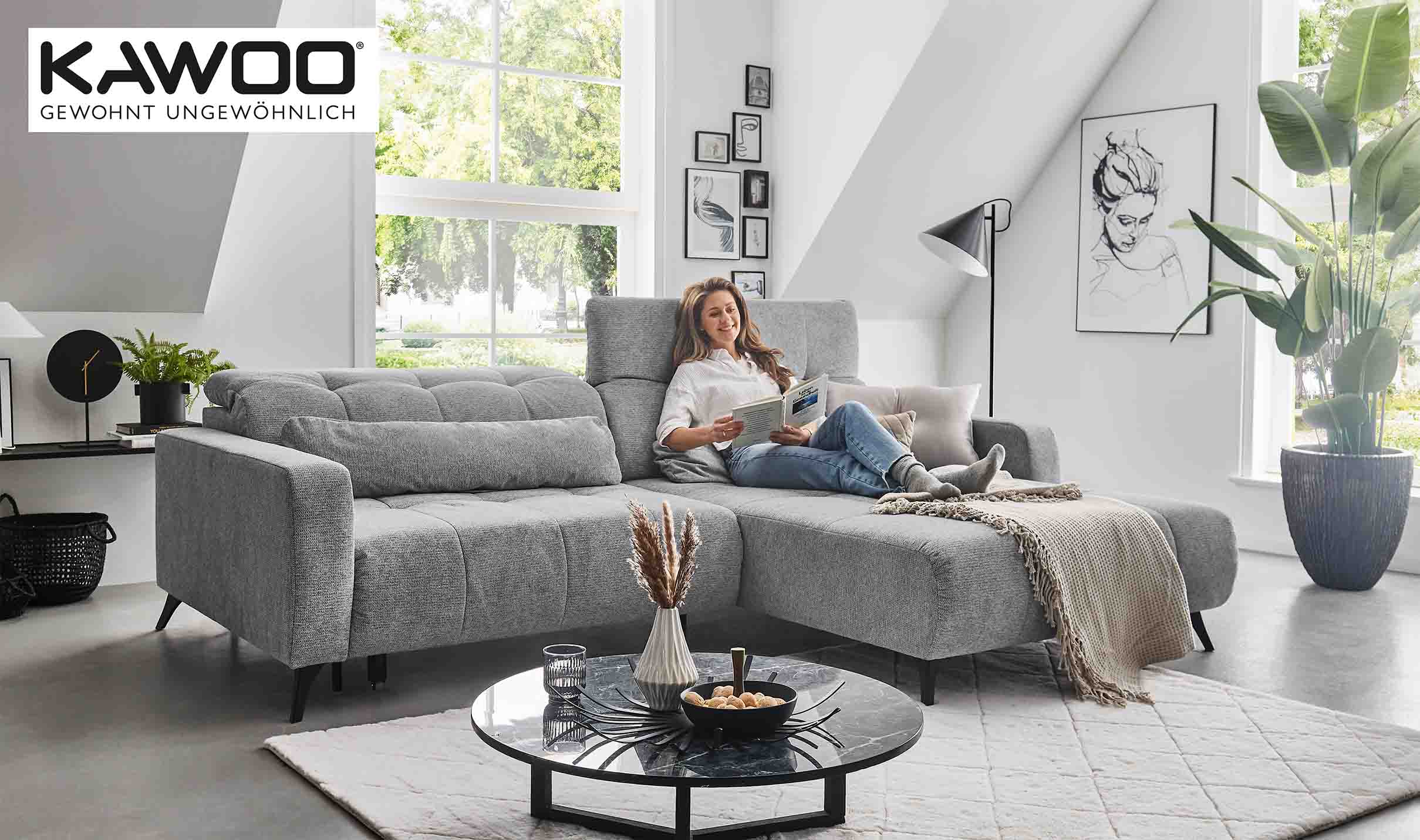 best. aus: 2-Sitzer mit Armteil links und Ottomane mit Armteil rechts,