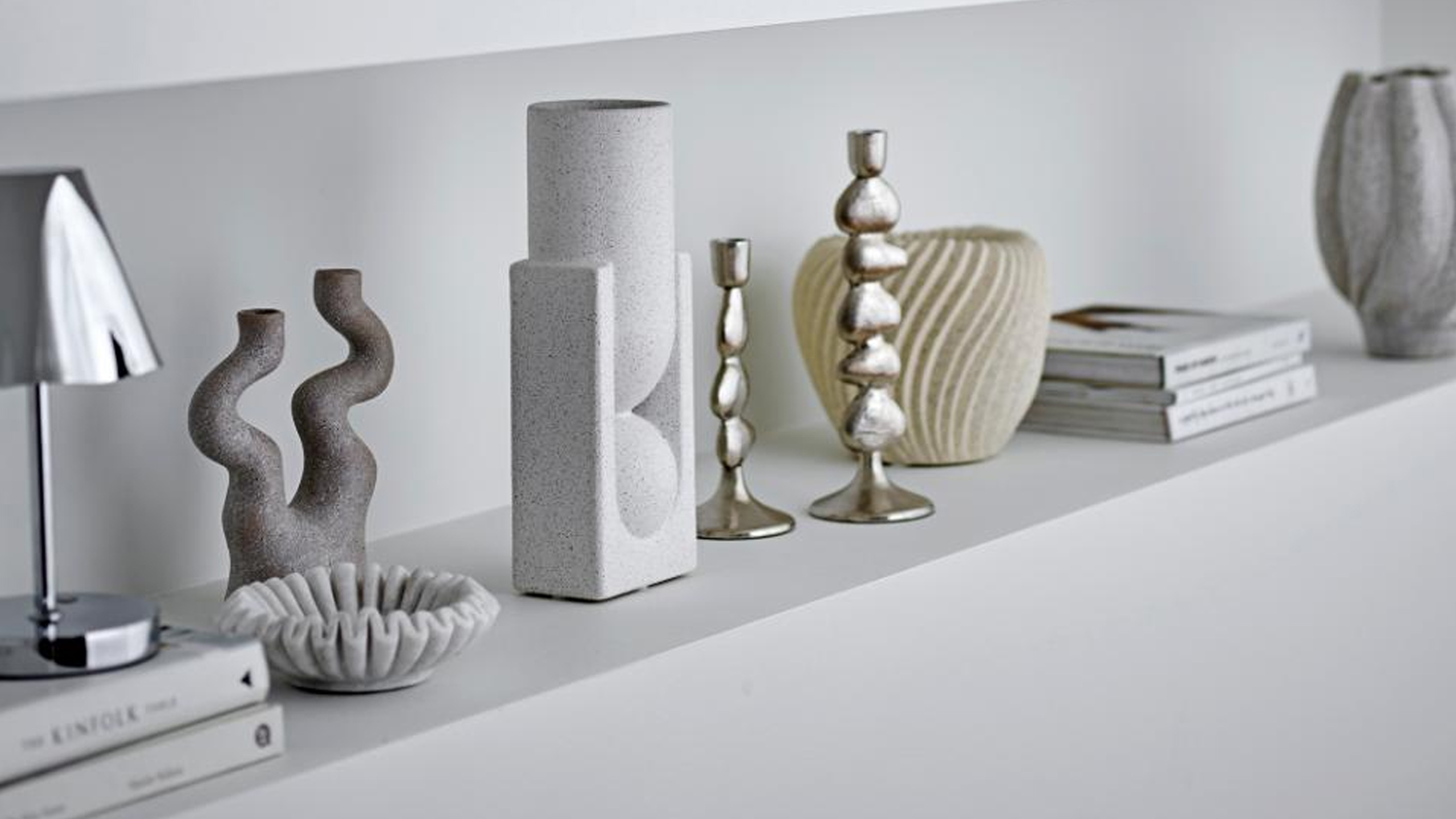 Beispiele für Quiet Luxury Deko: Große Pflanzen, Blumen-Arrangements, Bücher, Deko-Schalen, große Spiegel und Wandbilder, Leinenvorhänge, …